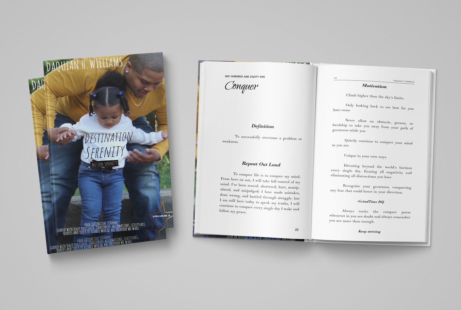 Destination Serenity is a daily interactive journal that dives deep into the readers cognitive thoughts, actions and allows the reader multiple ways to build on their mental health. Volume 3 starts on Day 181 of you challenging yourself and bettering who you are daily. Loaded with daily challenges, affirmations, life stories, quotes, scriptures and motivation that takes the reader directly inside their life to begin creating, exploring, realizing, and changing who we are daily for the better.